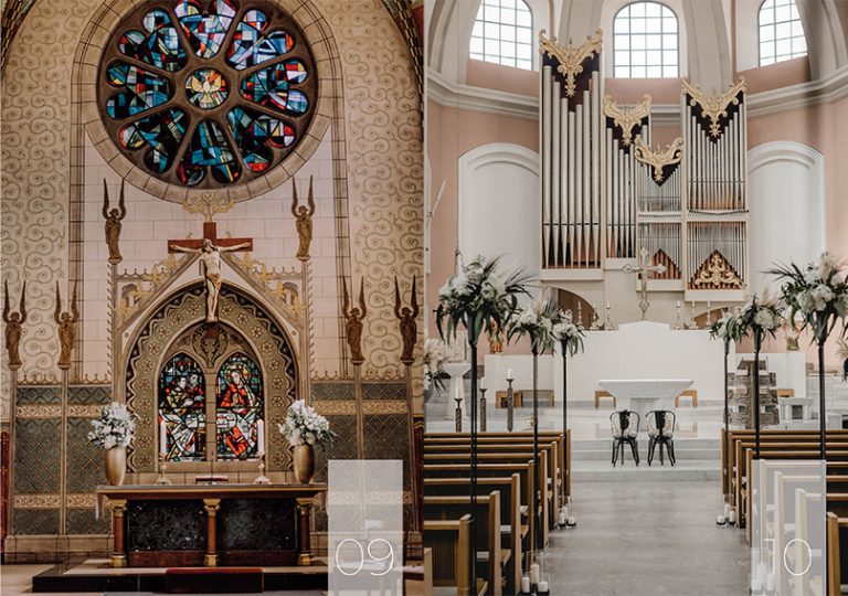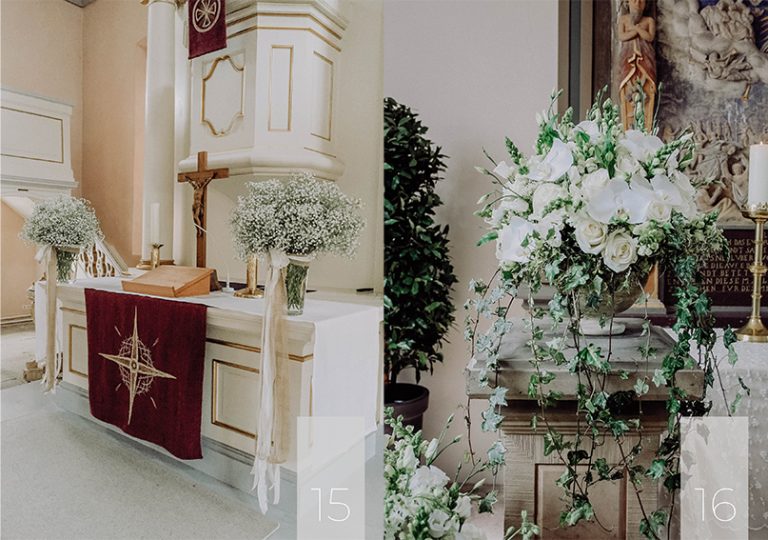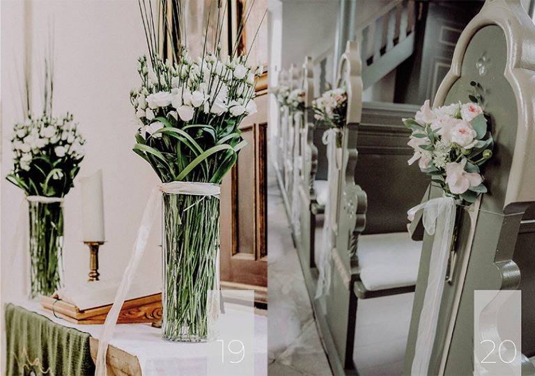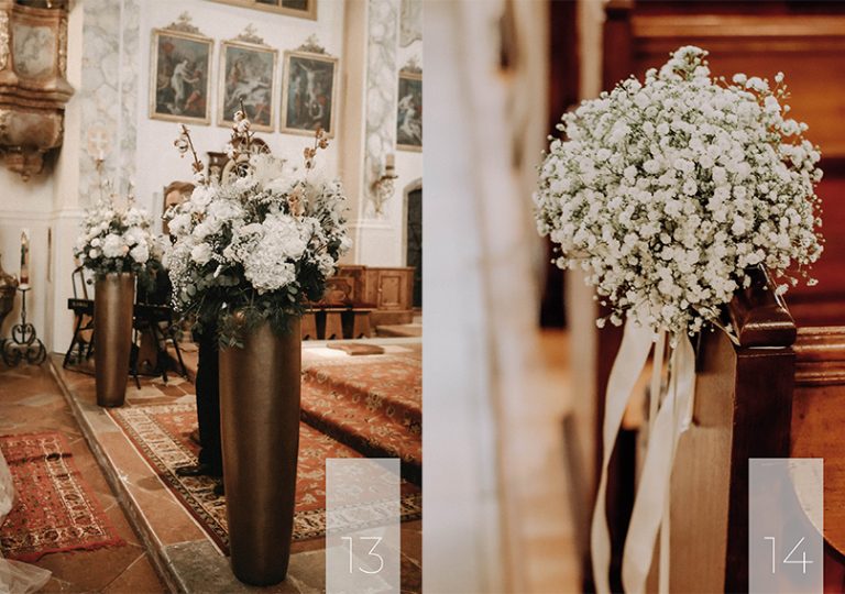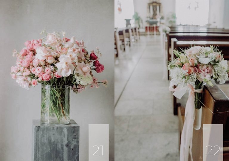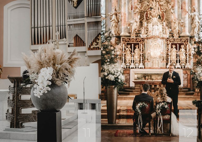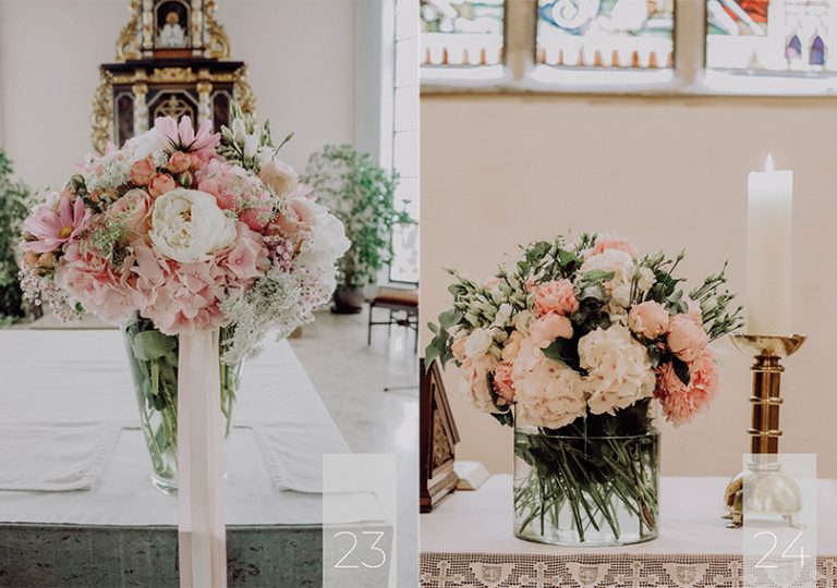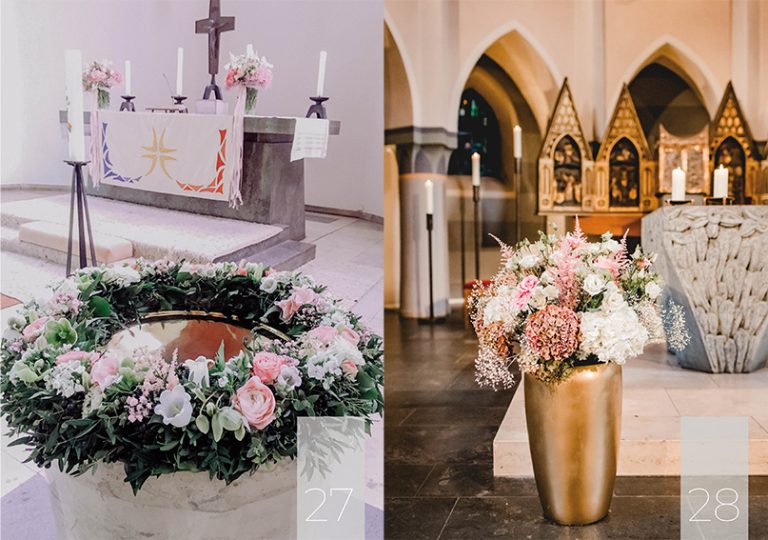 Hier zeigen wir euch eine kleine Auswahl an floralem Schmuck für eure kirchliche Hochzeit, Für alle Glaubensrichtung werden wir den perfekt blumigen Rahmen schaffen.