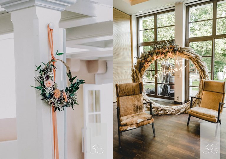 In dieser Produktbroschüre zeigen wir euch einige Beispiele für die Gestaltung eurer freien Trauung. Dieser Bereich der Gestaltung wird idealer Weise an euer Konzept und an die Umgebung eurer Trauung angepasst.