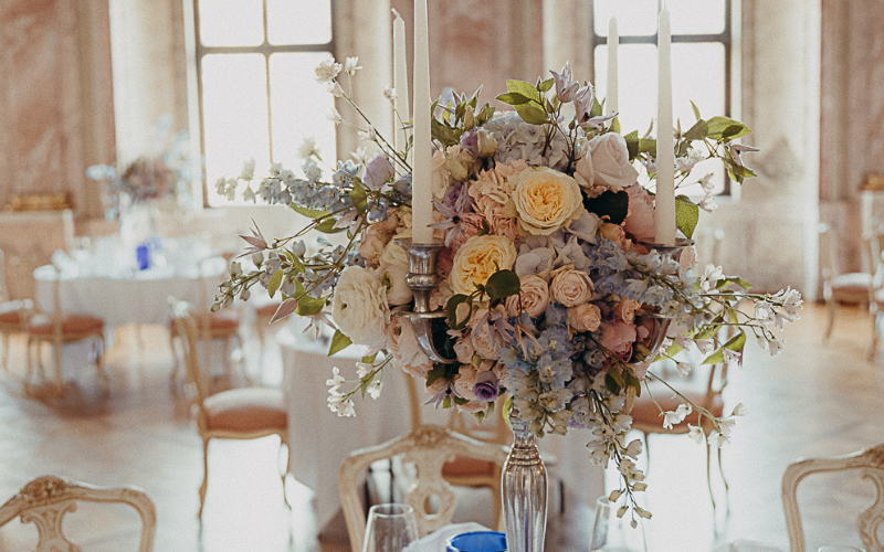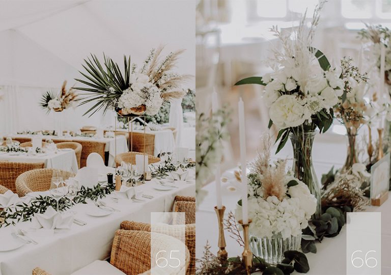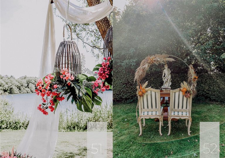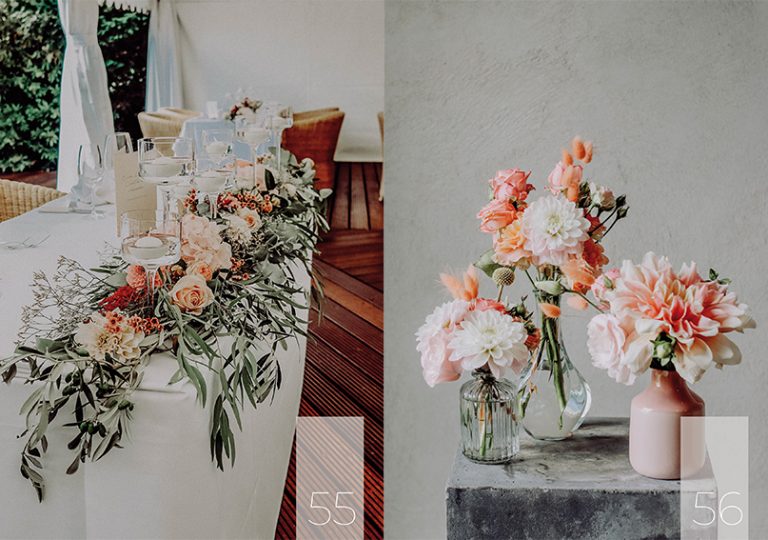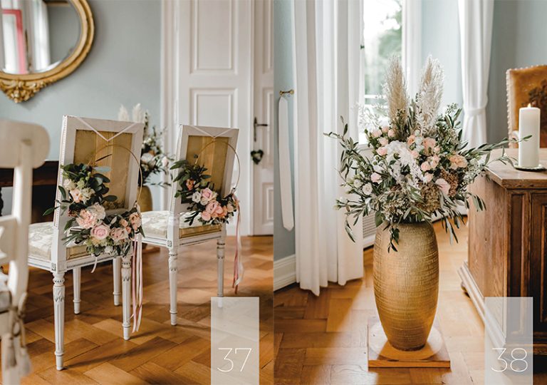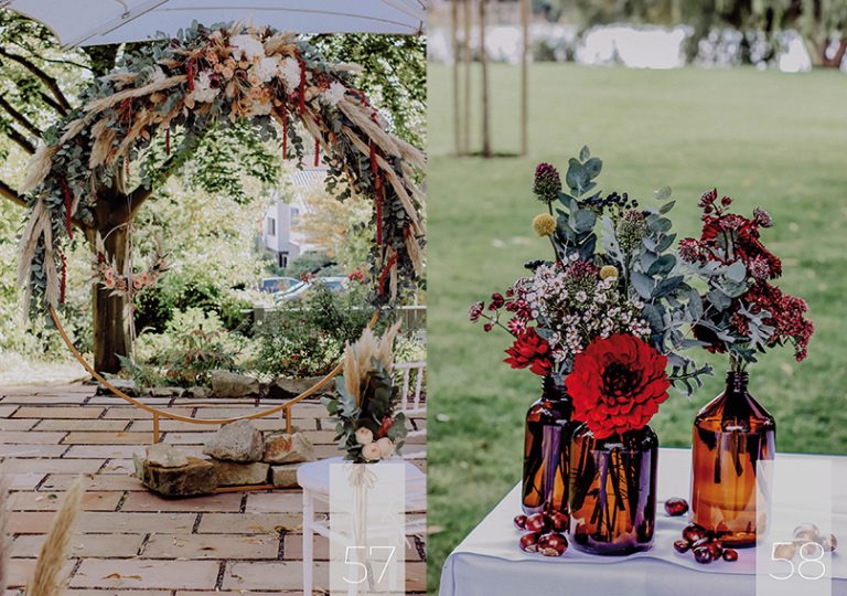 - Umfang der Blumendekoration: Die Anzahl und Art der floralen Arrangements, die ihr für eure Hochzeit benötigt, beeinflusst den Gesamtpreis.