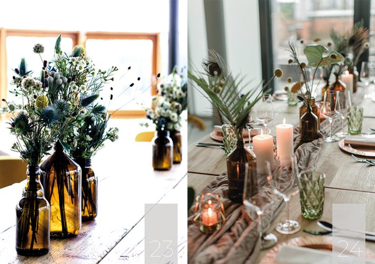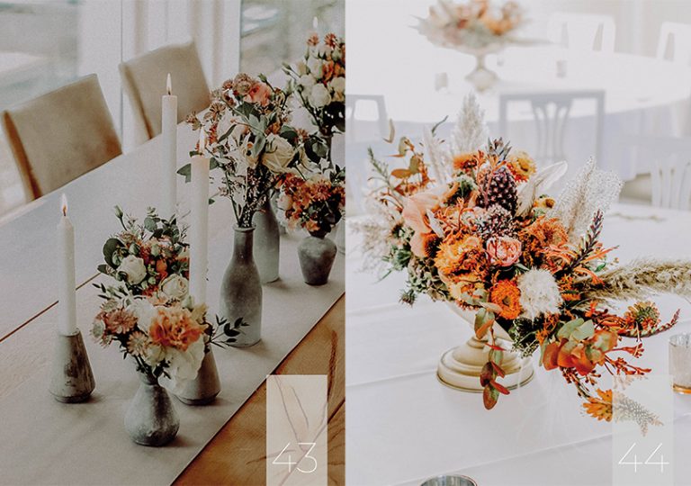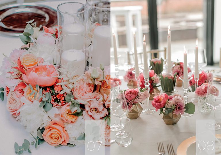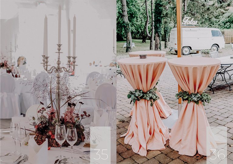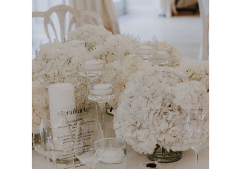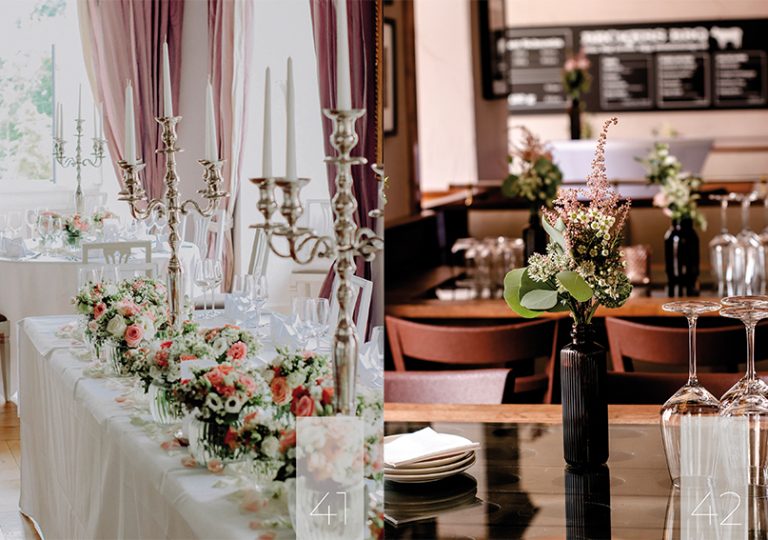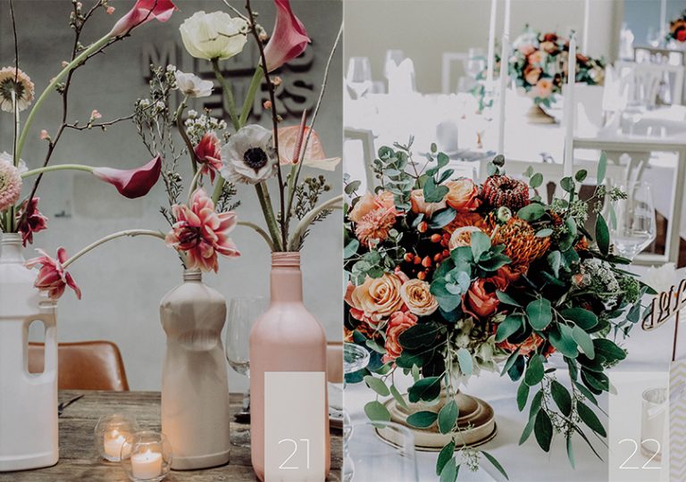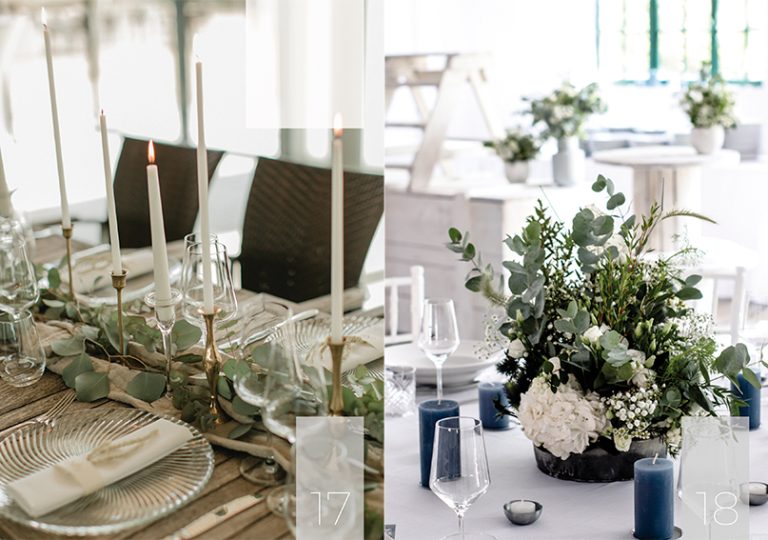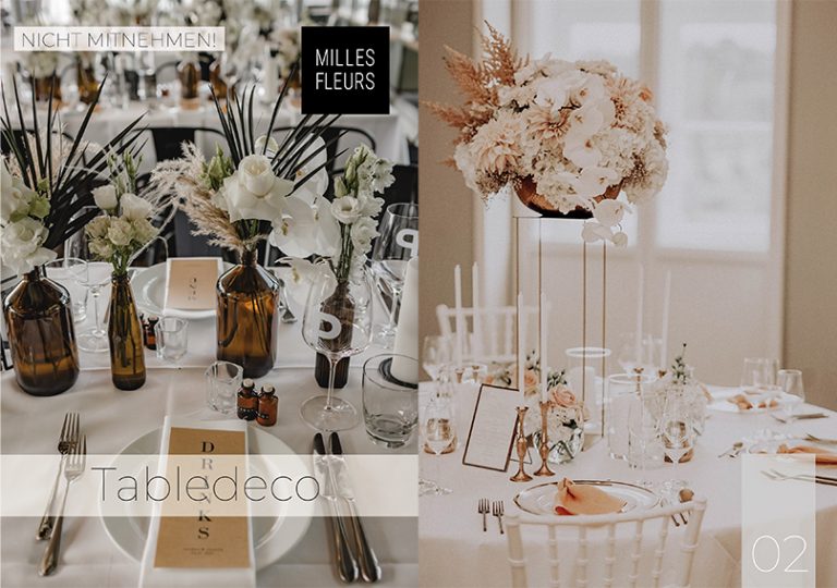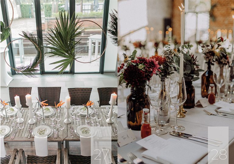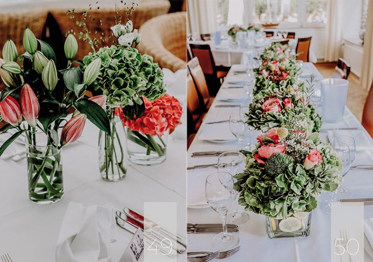 In dieser Produktbroschüre zeigen wir euch einige Beispiele für die Gestaltung eurer Tische. Für die Entscheidung ist wichtig auf die Tischform, die nonfloralen Produkte wie Kerzenleuchter und Vasen zu achten. Die Blumen und Farben passen wir am Gesamtkonzept an.