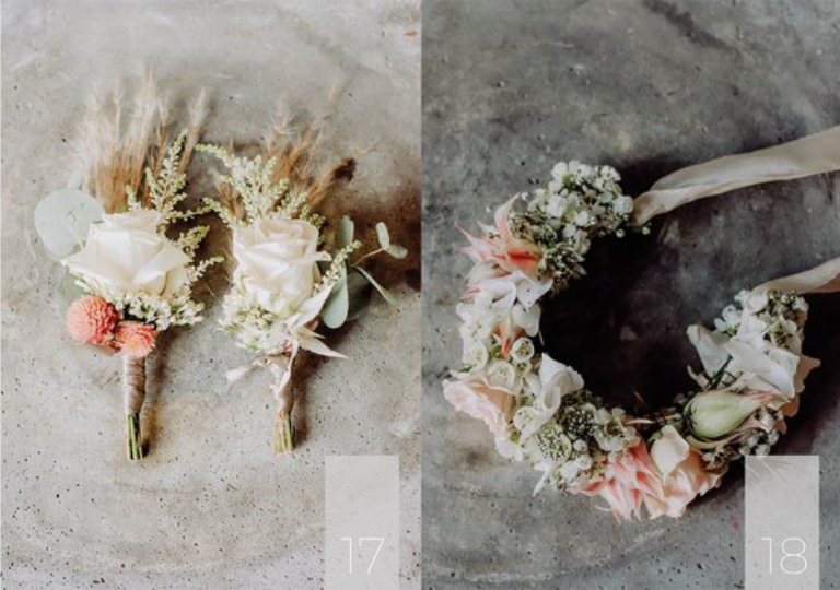 Hier zeigen wir euch eine kleine Auswahl an floralen Schmuck für den Bräutigam, Trauzeugen, Blumenkinder und Haarschmuck für die Braut. Die Farben werden immer an den Brautstrauß und das Konzept der Hochzeit angepasst.