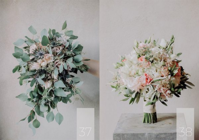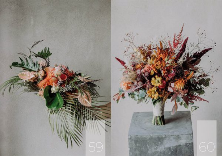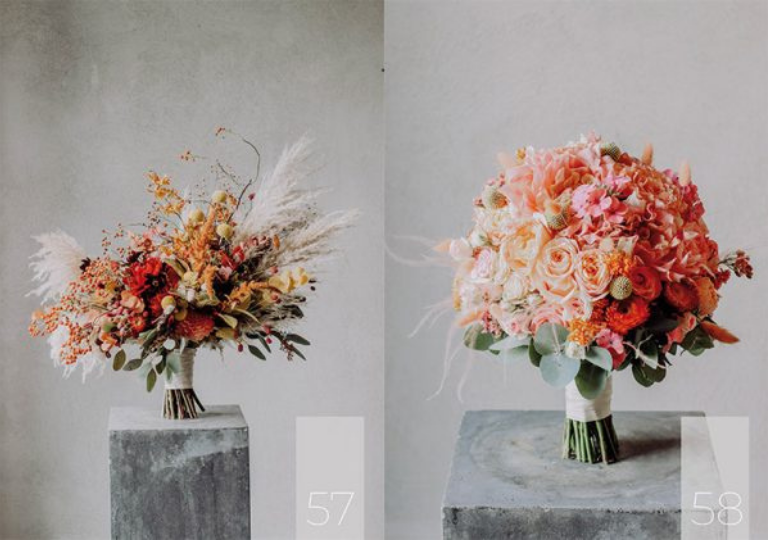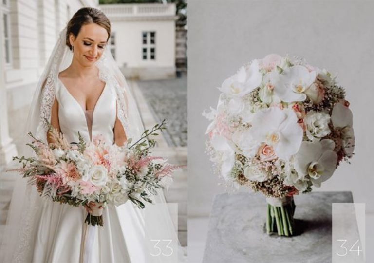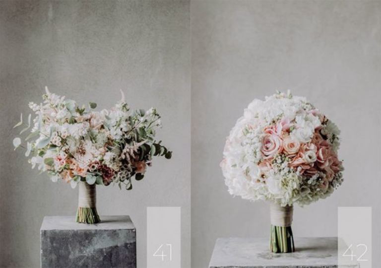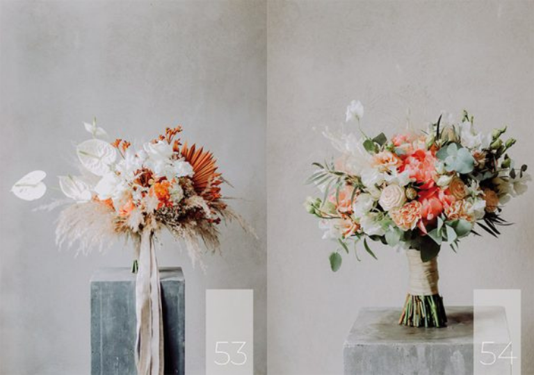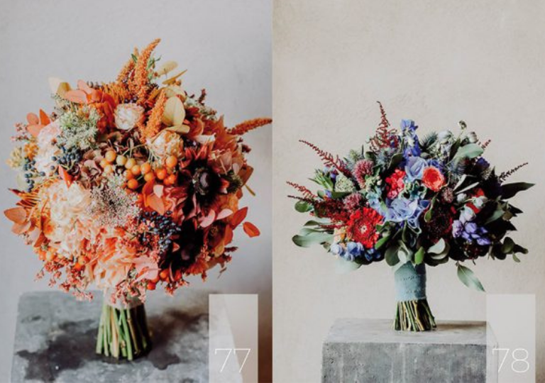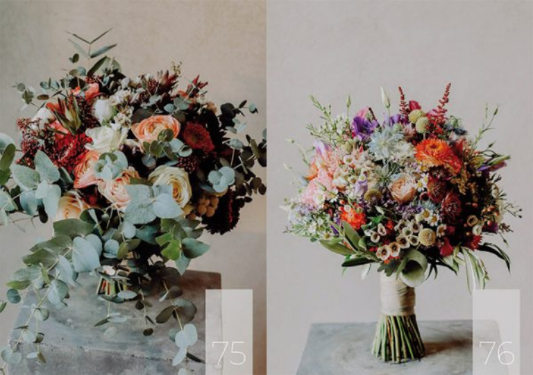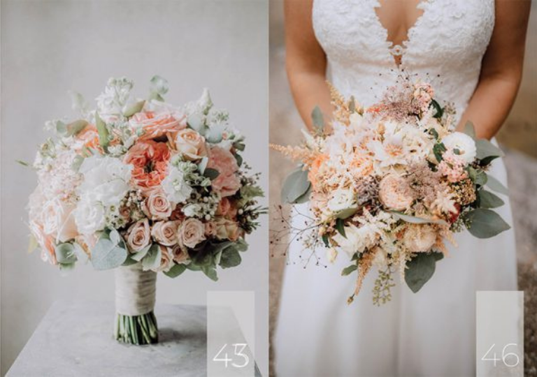 In unserer Produktbroschüre findest du einige Brautstraußbeispiele zur Auswahl. Generell bitten wir dich in unserer Beratung immer um zwei Auswahlbeispiele. Ein Bild bei dem dir die Form und Struktur der Blüten am besten gefällt und ein weiteres mit der Farbgebung.