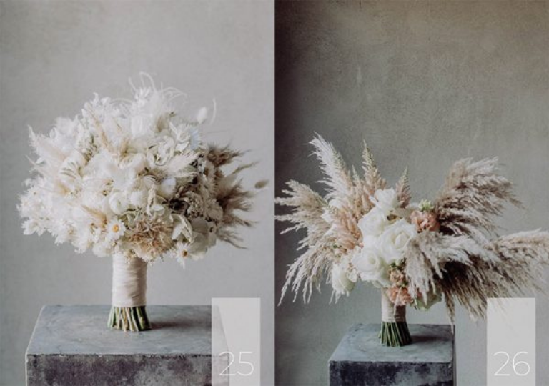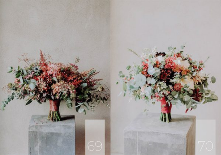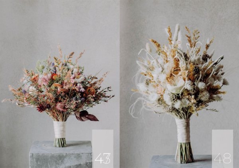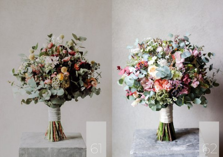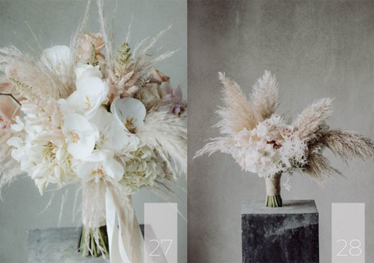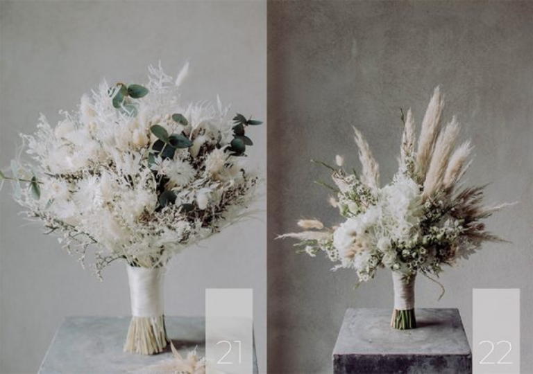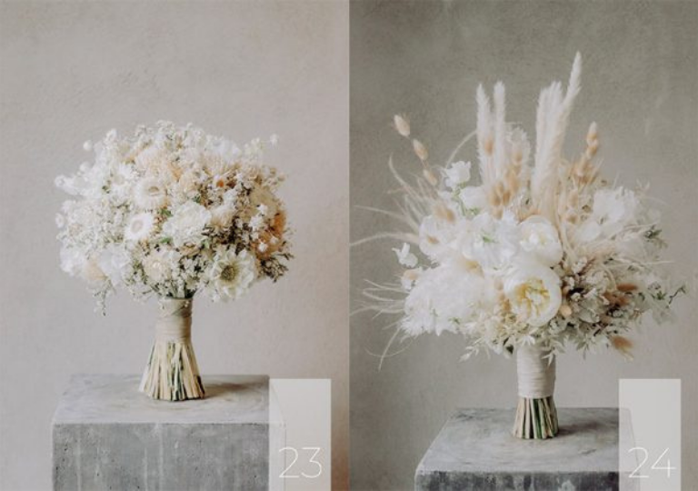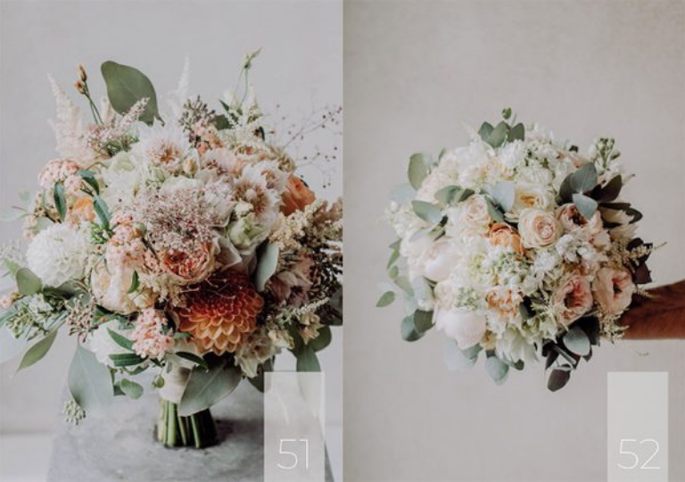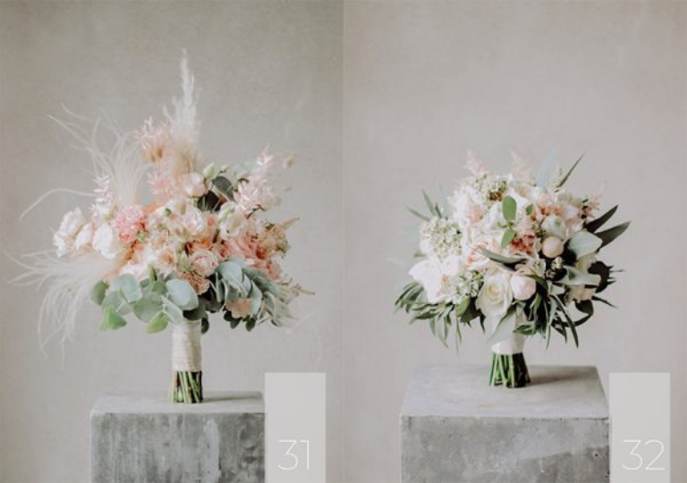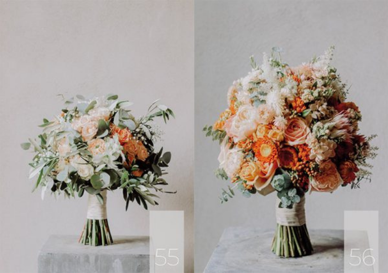 In unserer Produktbroschüre findest du einige Brautstraußbeispiele zur Auswahl. Generell bitten wir dich in unserer Beratung immer um zwei Auswahlbeispiele. Ein Bild bei dem dir die Form und Struktur der Blüten am besten gefällt und ein weiteres mit der Farbgebung.