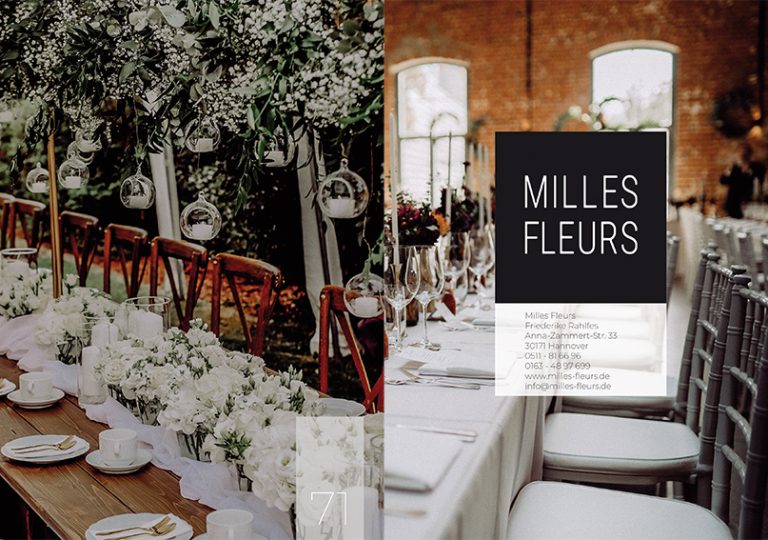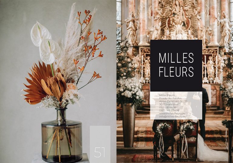 “Schon die erste Begegnung war ein Erlebnis für sich. Rieke hat für alle Wünsche ein offenes Ohr und direkt Ideen parat. Sie schafft es, einen mit ihrer ganz eigenen „charmant vernichtenden“ Art auf den Boden der Tatsachen zurückzuholen und für das verfügbare Budget das Beste herauszuholen. Sie hat sofort Ideen, wie man die Fantasien des Brautpaars in die Realität umsetzt – von langweiligen Standards weit entfernt. Selbst wenn man aufgrund erschwerter Bedingungen, wie in unserem Fall Corona, die Planung last minute über Board werfen muss, weiß man trotzdem, es wird am Ende fantastisch aussehen. Sie und ihr Team haben uns bis zur letzten Sekunde mit unermüdlichem Einsatz unterstützt, das visuelle Bild der Hochzeitsfeier (weit über die Floristik hinaus) zu erschaffen. Wir sind wahnsinnig froh, Rieke begegnet zu sein und werden keine Gelegenheit verpassen, wieder mit ihr und Mille Fleurs zusammenzuarbeiten.“